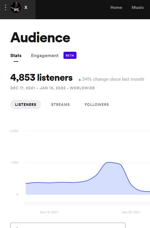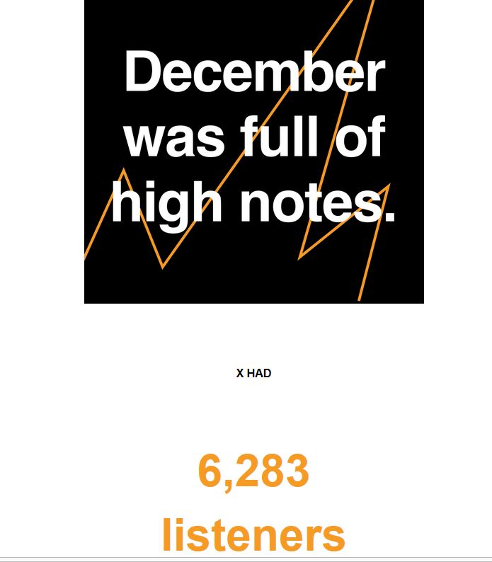 These are the stats of listeners etc on Spotify. Remember we are on all venues. Will be looking for stats on other venues and post them once we get them.
